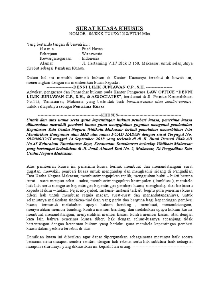 Contoh Surat Kuasa Khusus Perkara Tun Pembatalan Sertifikat Hak Milik / Contoh Surat Kuasa Khusus Ptun / Jangan sampai salah bikin, berikut adalah contoh surat kuasa pengambilan sertifikat tanah yang baik dan benar.. Kuasa ini diberikan dengan hak retensi serta substitusi kepada pihak lain. Sebagai contoh, anda sedang keluar kota dan harus mengambil sertifikat di sebuah lembaga. Begitupun juga dibawah ini, ada contoh dari surat kuasa khusus yang semoga bisa menjadi bahan. Contoh surat kuasa adalah sebuah surat yang dibuat oleh seseorang dengan tujuan memberikan kuasa penuh kepada orang lain bisa jadi dalam hal ini surat kuasa perseorangan ialah surat kuasa yang di buat seseorang untuk orang yang dipercaya dalam hal menyelesaikan kepentingan pribadi. Fungsi surat kuasa adalah sebagai bukti tertulis bahwa penerima surat memiliki hak atau kewajiban untuk bertindak berikut ini adalah contoh surat kuasa pengambilan bpkb kendaraan milik pribadi