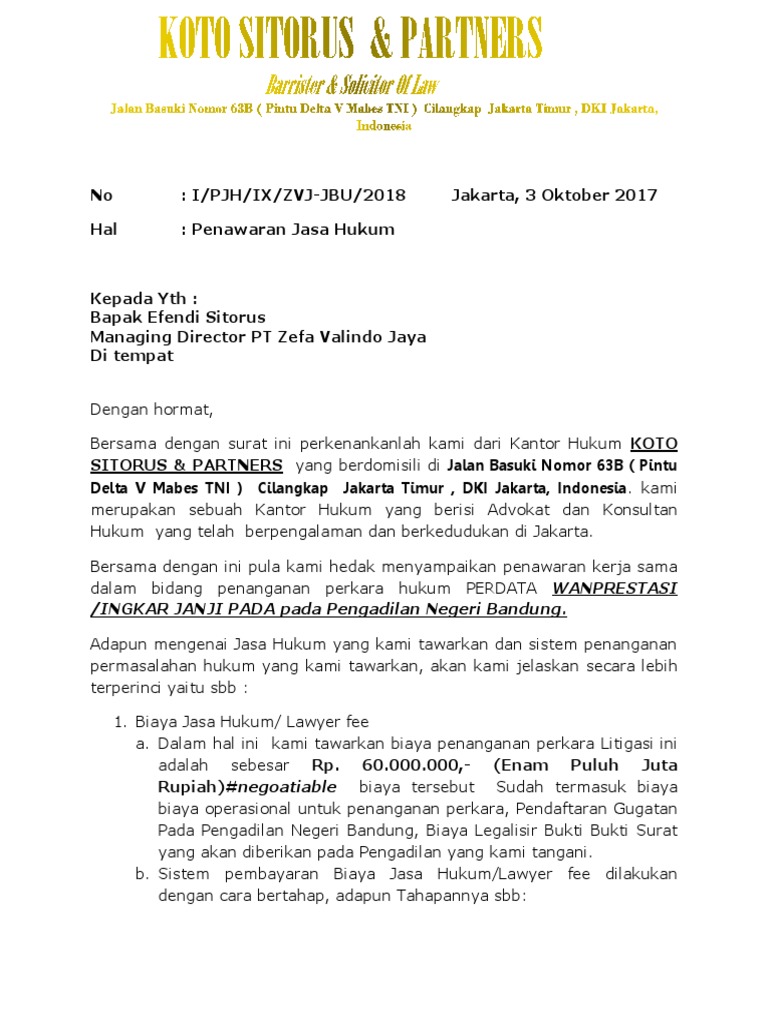 Doc Draft Surat Penawaran Jasa Legal Docx Doyo Utomo Academia Edu from 0.academia-photos.com Mengingat pentingnya sebuah surat perjanjian kerjasama, maka poin yang tertuang di dalamnya harus menggambarkan dengan jelas perihal. Contoh surat perjanjian yang baik dan benar dapat kamu gunakan sebagai referensi dalam menyusunnya. Sehingga isi perjanjian mengatur jasa kerja atau pelayanan. Pada hari ini, selasa, 2 maret 2018, bertempat di surakarta, kami surat perjanjian kerjasama jasa. Dan juga agar kerjasama yang saudara lakukan ini mempunyai kekuatan hukum. Melalui kontrak terciptalah perikatan atau hubungan hukum yang menimbulkan. (1) surat perjanjian kerjasama pengadaan. Kedua surat perjanjian diatas dianggap sah dimata hukum, selama syarat syarat surat perjanjian kerjasama antara.